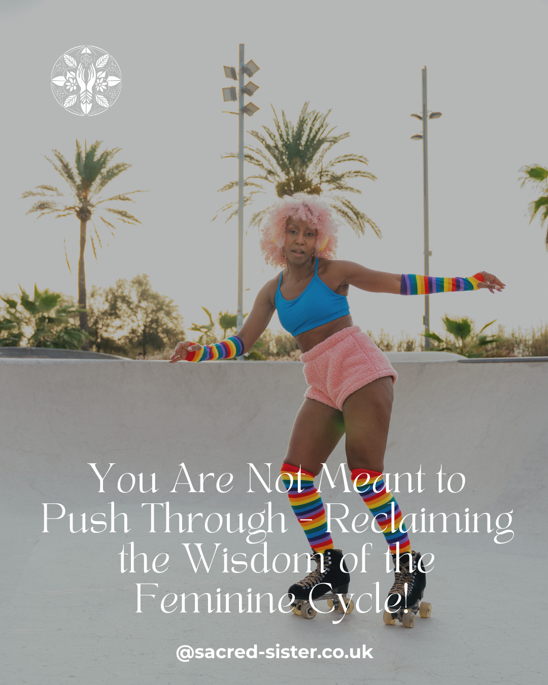 And if you have no idea why this picture of a woman skating is here in a blog talking about feminine cycles and pushing through, you need to listen to the podcast, and/or cast your mind back to the day when adverts on the TV, taught us about our cycle……oh and pushing through!